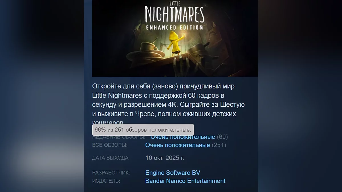 Полноценный релиз Little Nightmares Enhanced Edition состоится 10 октября на PlayStation 5, Xbox Series X/S, Nintendo Switch 2 и PC. Все обладатели оригинальной игры получат её бесплатно.