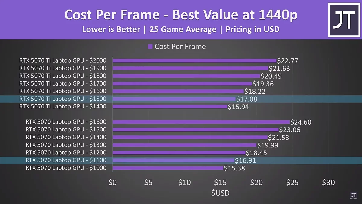 Анализ стоимости показывает, что на момент проведения тестов цена ноутбуков с RTX 5070 Ti была примерно на 36% выше? что примерно соответствует приросту производительности на 33% в 1440p и выглядит разумно с точки зрения цены за кадр, однако главный вывод тестирования касается не текущей производительности, а долговечности видеокарты. Растущие требования новых игр к объему видеопамяти означают, что 8 ГБ RTX 5070 могут стать «узким местом» гораздо раньше, чем исчерпается ее вычислительная мощность и пользователь будет вынужден снижать настройки текстуры или разрешение для комфортной игры.