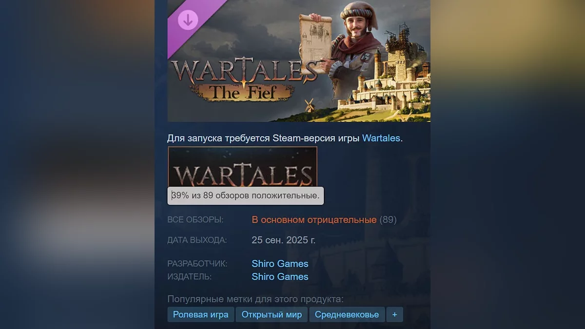 Средневековая ролевая игра с видом сверху и открытым миром Wartales получила крупное платное дополнение под названием Contract: The Fief. В сервисе Steam оно стоит 750 рублей.