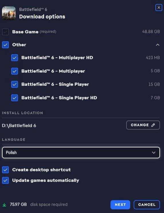 Стали известны точный размер и время выхода Battlefield 6 на PC