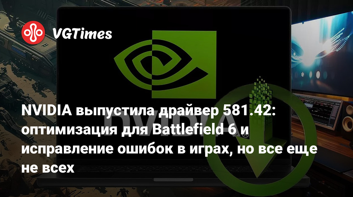 NVIDIA выпустила драйвер 581.42: оптимизация для Battlefield 6 и исправление ошибок в играх, но все еще не всех