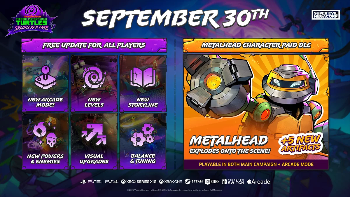 Кавабанга! Наконец-то наступил самый важный день для Teenage Mutant Ninja Turtles: Splintered Fate. Начиная с сегодняшнего дня игроки могут погрузиться в большое обновление с новым контентом, дополнительным режимом и долгожданными сюрпризами. Независимо от того, играете ли вы с самого релиза или только вступаете в бой, это обновление открывает совершенно новую главу для Черепашек и их друзей.