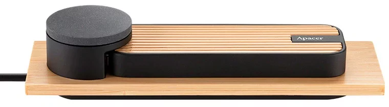 Корпус устройства выполнен из натурального бамбука и алюминиевого сплава, а для подключения к компьютеру используется специальная док-станция, которую Apacer называет «колыбелью». Благодаря использованию природного материала, каждый экземпляр SSD имеет уникальный рисунок и оттенок.