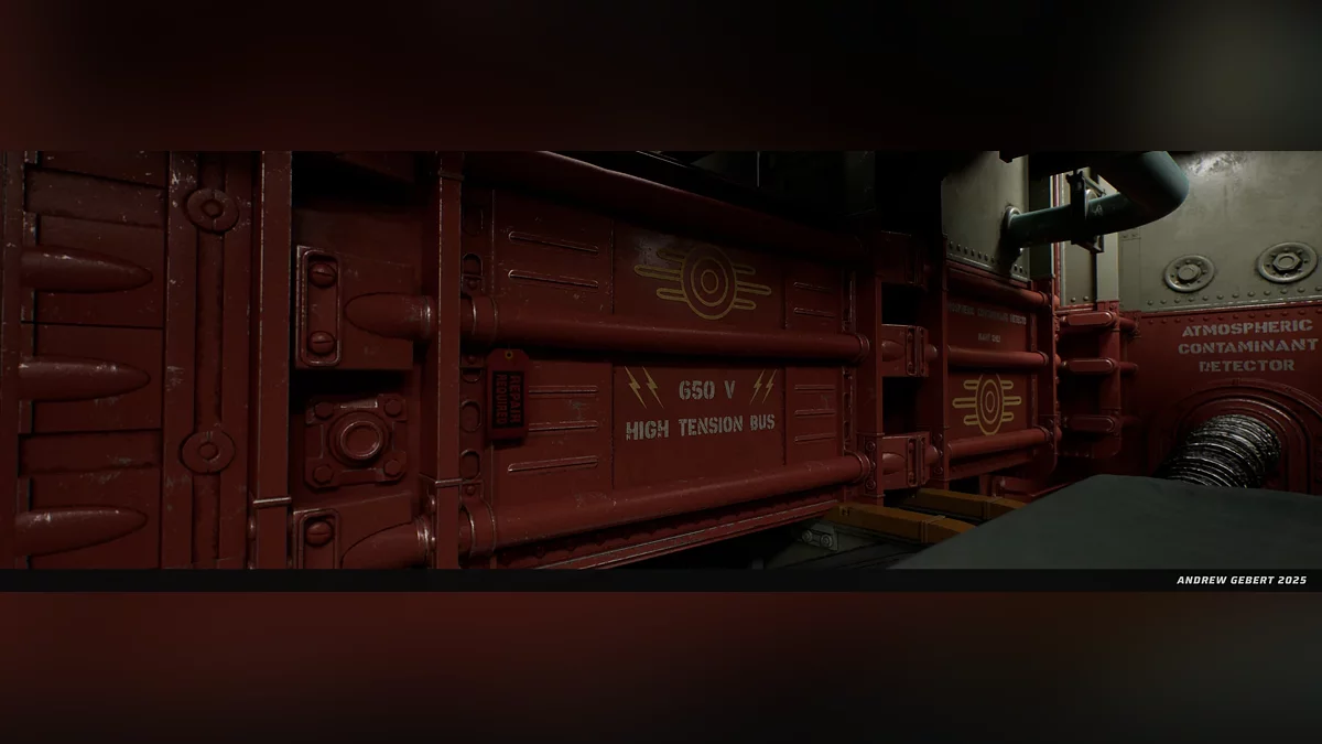 Эндрю решил воссоздать техническое помещение одного из Убежищ Fallout 4. Для этого художник использовал программы Unreal Engine 5, Blender и Substance 3D Painter. Работу похвалили Ирен Девин Келлер (Irene Devin Keller), трудившийся над заставкой для второго сезона сериала «Уэнздей», Робин Томар (Robin Tomar), приложивший руку к созданию шутера от третьего лица Remnant 2, и Брайан Вагнер (Brian Wagner), один из разработчиков выживалки с открытым миром 7 Days to Die.