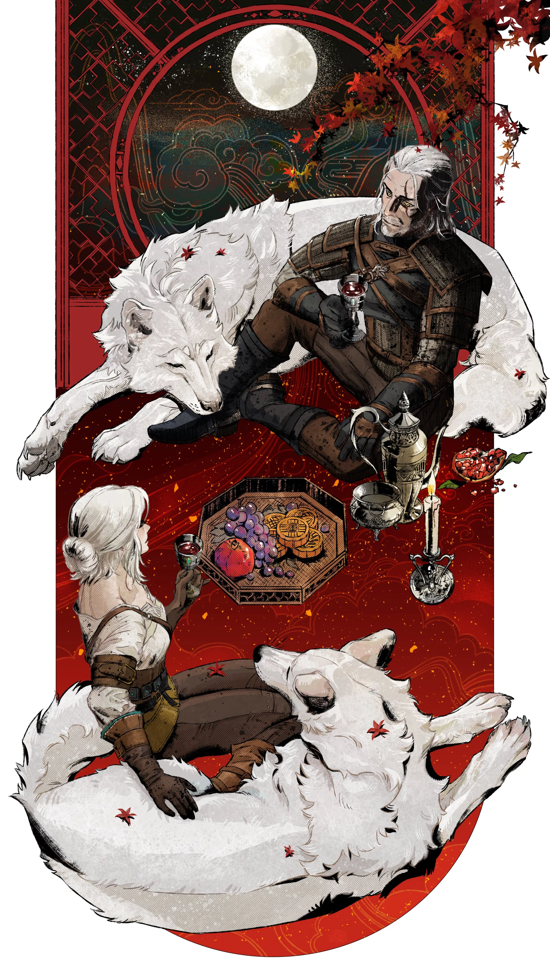 Перед этим команда выложила другой рисунок с Геральтом и Цири, на котором также засветился Весемир. Автором работы выступил Moonui.