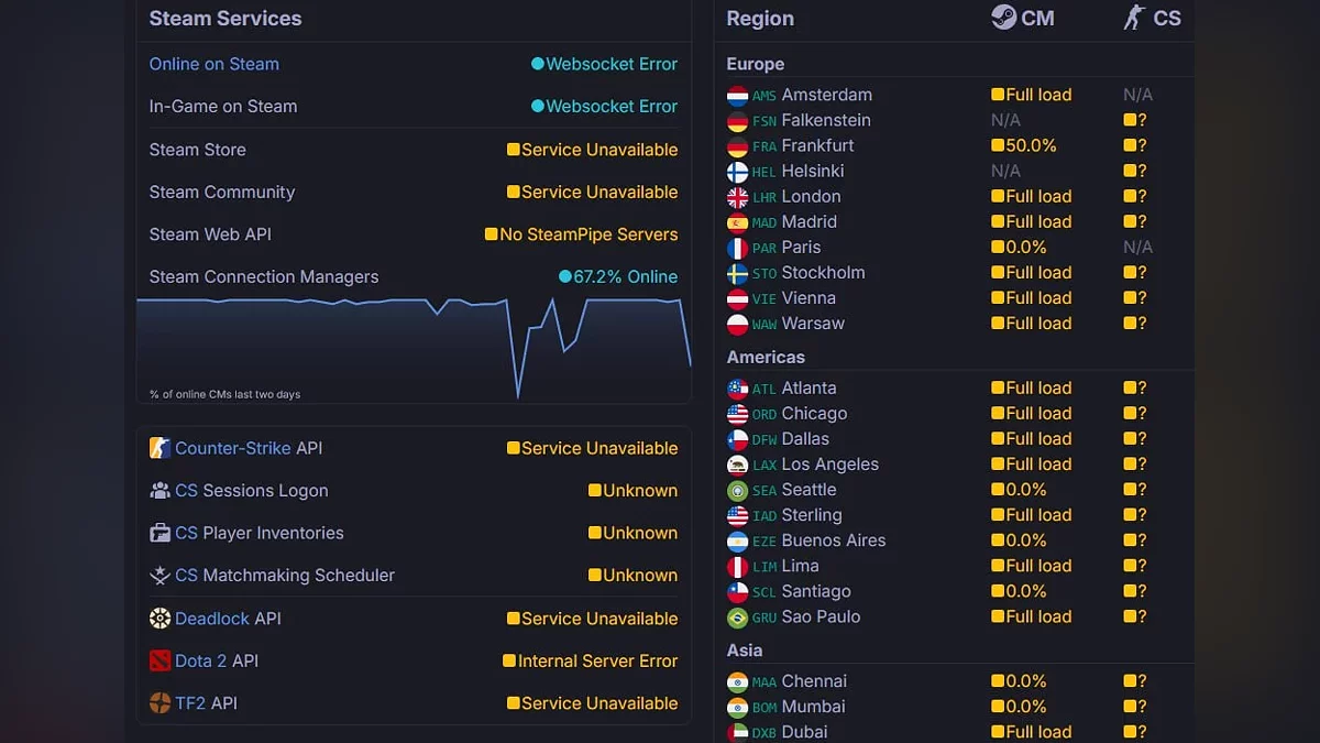 Valve пока не прокомментировала ситуацию и не сообщила, когда полностью решит проблемы с доступностью своих сервисов.
