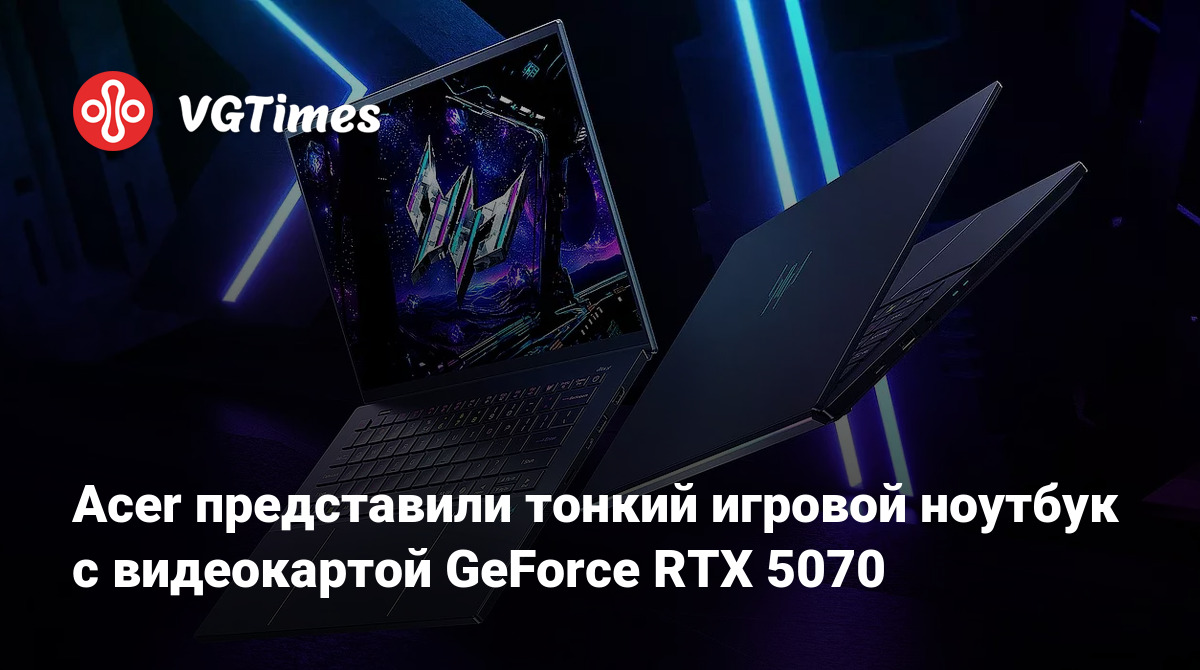 Acer представили тонкий игровой ноутбук с видеокартой GeForce RTX 5070