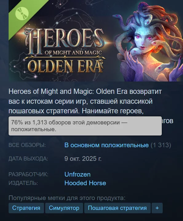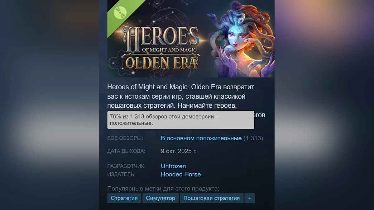 9 октября в Steam вышла демоверсия пошаговой стратегии Heroes of Might and Magic: Olden Era. Игроки уже оценили демка — она получила 76% положительных отзывов в сервисе Valve.