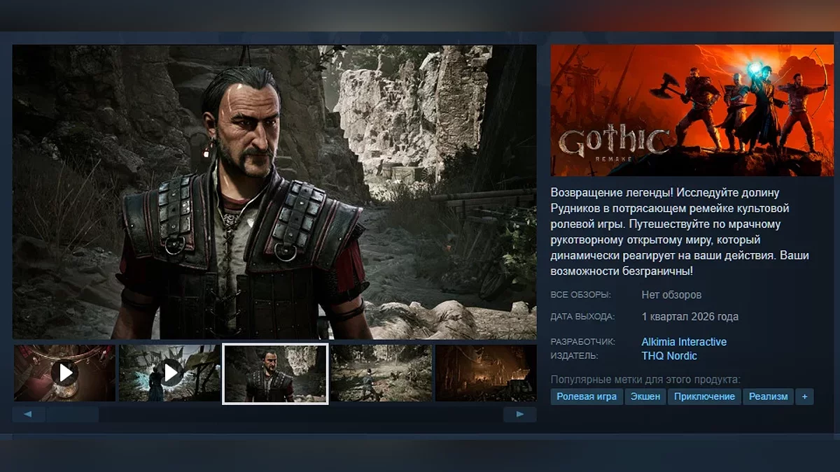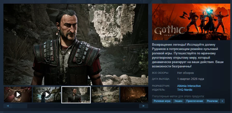 Студия Alkimia Interactive ещё раз подтвердила релизное окно Gothic 1 Remake, которую должны выпустить в начале 2026 года. Разработчики обновили страницу в Steam, заменив дату выхода «Скоро» на «1 квартал 2026 года».