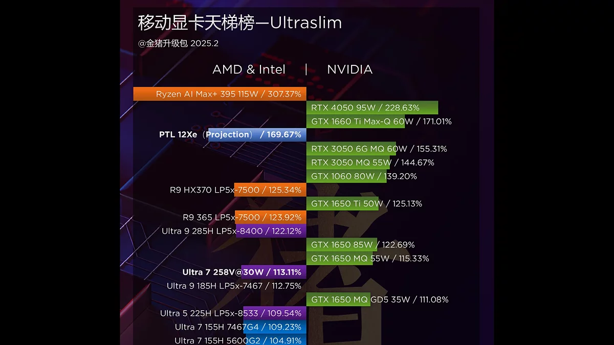 Если опираться на предоставленные цифры, новинка опережает графику предыдущего поколения Lunar Lake (Arc 140V) примерно на 45-50%. Такой прирост во многом объясняется увеличением количества самих исполнительных блоков и подобное улучшение подтверждает и сама Intel, ранее заявлявшая о целевых 50% росте графической мощности.