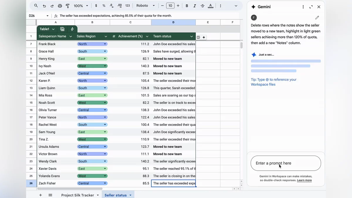 Прежде взаимодействие с ИИ в таблицах напоминало пошаговые инструкции: нужно было попросить его выполнить одно действие, дождаться результата, а затем отдать следующую команду. Теперь пользователь может описать всю последовательность изменений одной командой, при этом система распознает такие сложные запросы и выполняет все операции за один раз.