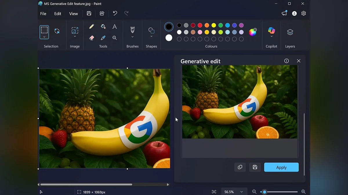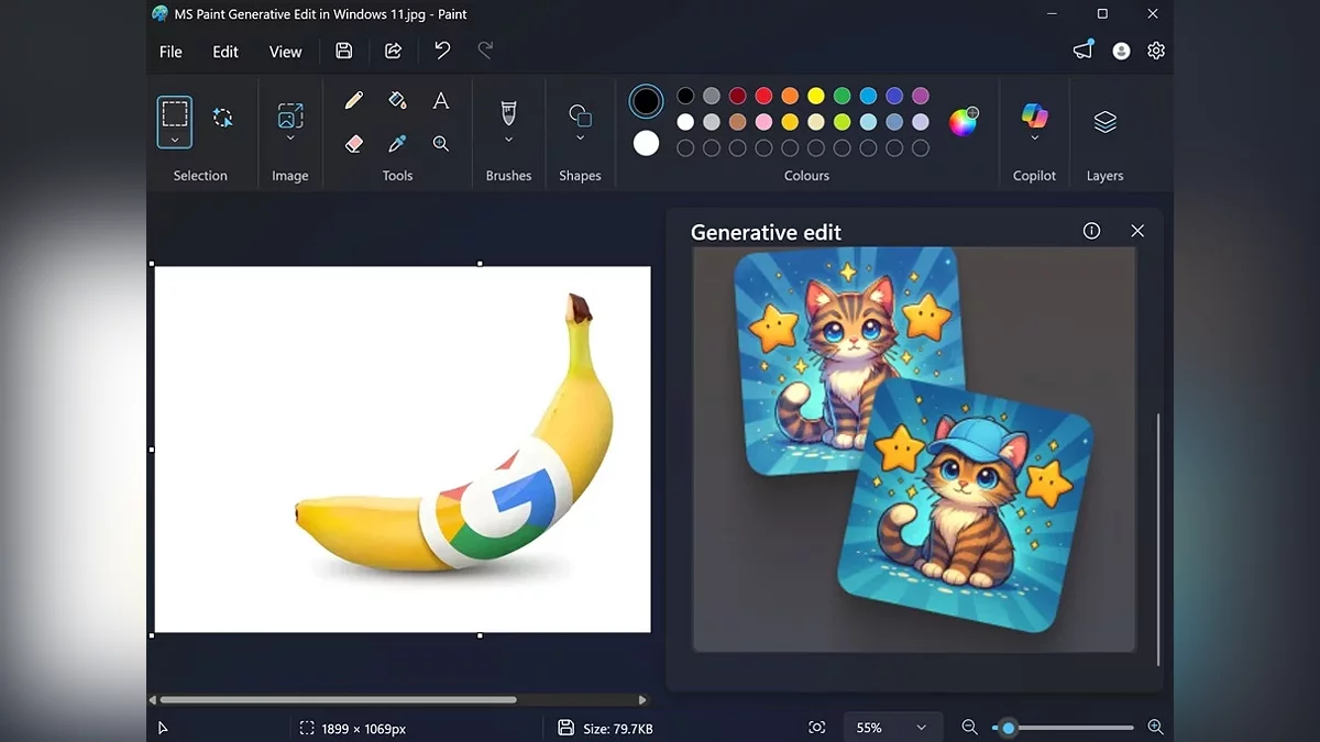 Вторая функция — «Генеративное редактирование», с помощью которой можно изменять существующие изображения, просто описывая желаемые правки текстом. Например, можно попросить ИИ поменять фон на рисунке или убрать лишний объект, так что, функциональность Paint начинает приближаться к возможностям некоторых популярных онлайн-сервисов для работы с изображениями.