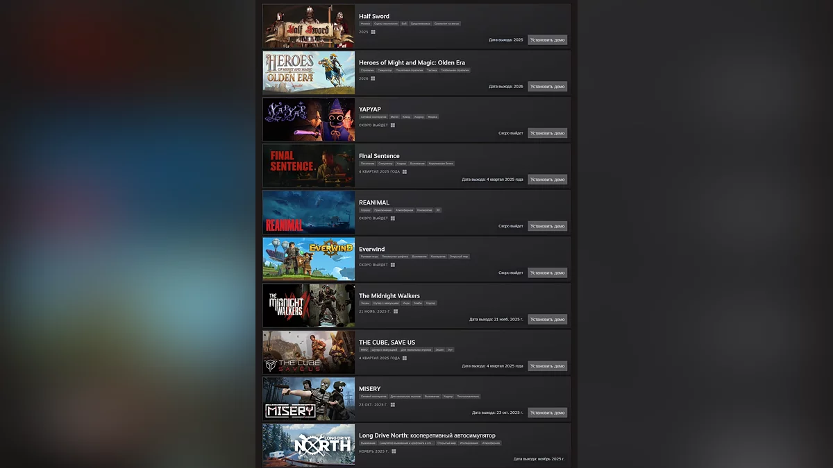 Компания Valve опубликовала топ самых популярных демоверсий фестиваля Next Fest — October 2025 Edition, который стартовал 13 октября и продлился до 20 числа в сервисе Steam.