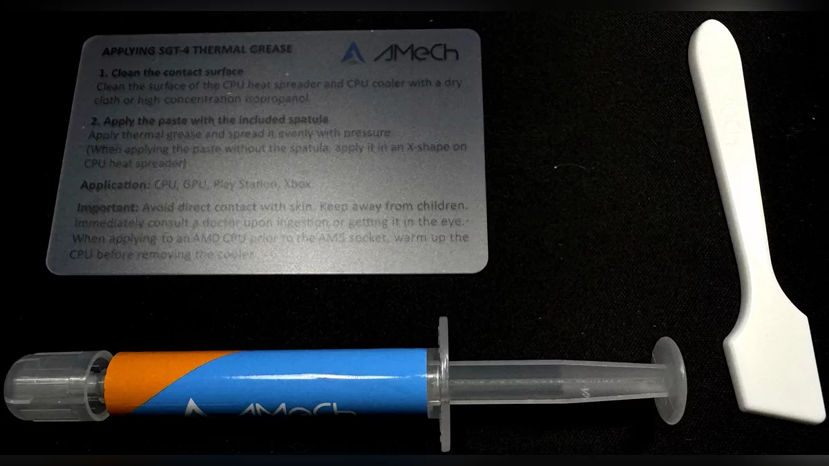 Термопаста Amech SGT-4 показала себя с опасной стороны, так согласно данным, полученным из нескольких источников, она не только плохо справляется с охлаждением, но и может нанести физический урон компонентам системы. Проблема кроется в химическом составе пасты, как выяснилось, в нее добавлен компонент, который при контакте с влагой из воздуха начинает выделять пары уксусной кислоты, а эти пары запускают процесс коррозии медных поверхностей процессора и основания кулера.