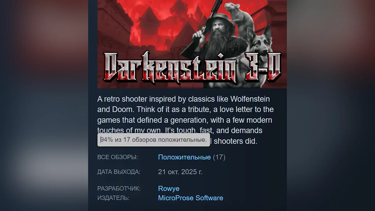 Ретро-шутер, вдохновлённый такими классическими играми, как Wolfenstein и Doom. Считайте его данью уважения, признанием в любви играм, определившим целое поколение, с несколькими моими собственными современными штрихами. Он сложный, быстрый и требует мастерства, как и те шутеры старой школы.
