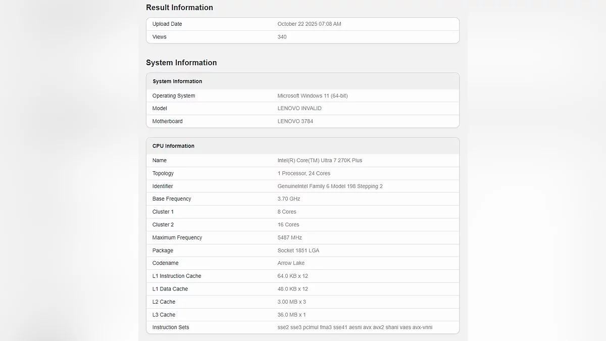 В сети появились первые данные о пока не анонсированном процессоре Intel Core Ultra 7 270K Plus. Информация, обнаруженная в базе тестов Geekbench, указывает на возможные изменения в стратегии компании при формировании линейки обновленных чипов Arrow Lake Refresh.