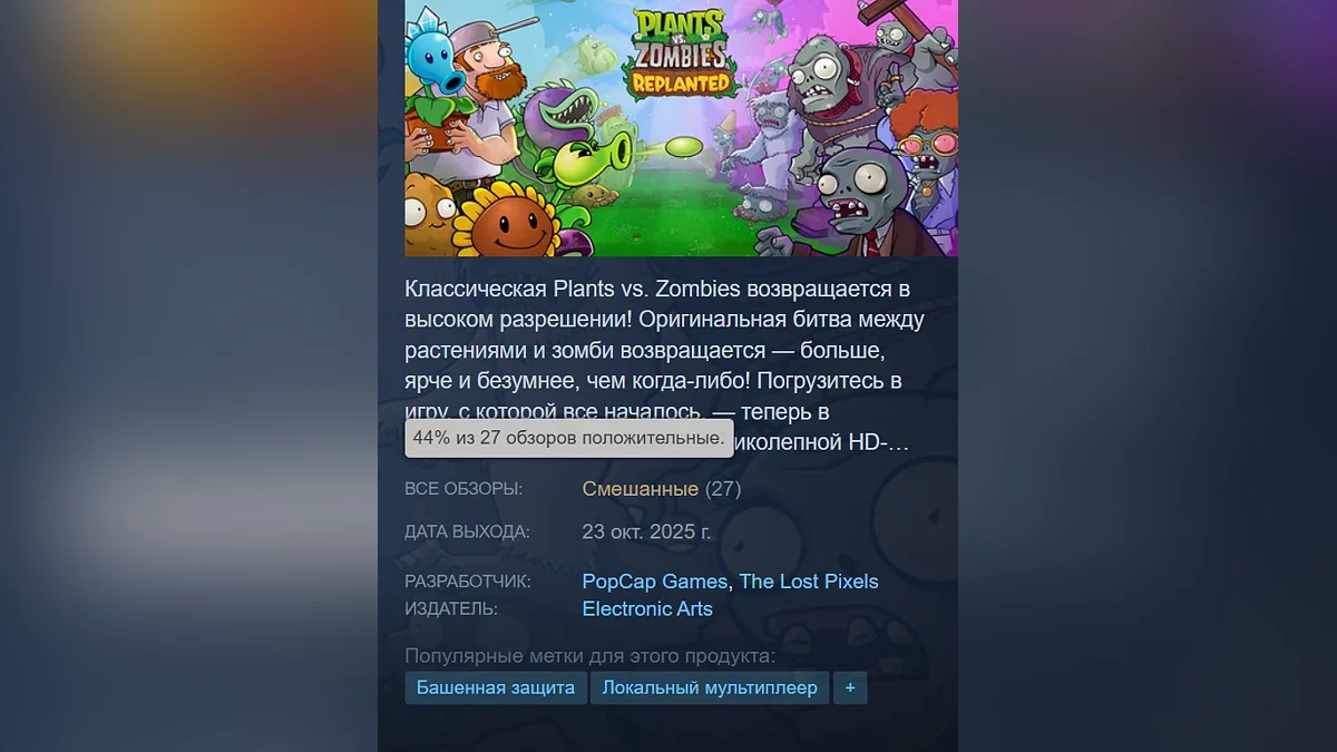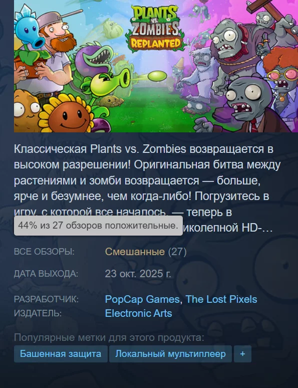 На PC и консолях состоялся релиз Plants vs. Zombies: Replanted, обновлённой версии Plants vs. Zombies. Игра доступна на PC, Xbox One, Xbox Series X/S, PS4, PS5, Nintendo Switch и Nintendo Switch 2.