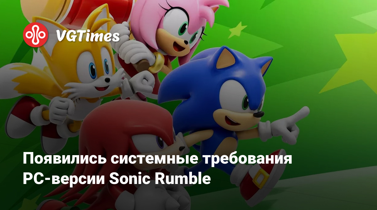 В сервисе Steam появились системные требования PC-версии Sonic Rumble. Для запуска игры потребуются как минимум NVIDIA GeForce GT 630 и 4 Гб оперативной памяти.