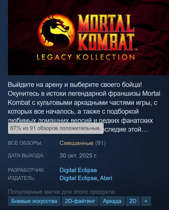 «Полная халтура» и «Вылетает и вылетает» — как игроки в Steam оценили Mortal Kombat: Legacy Kollection