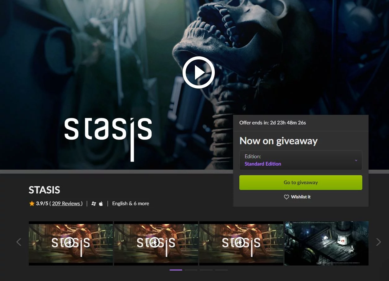Халява: на PC началась бесплатная раздача научно-фантастического хоррора Stasis