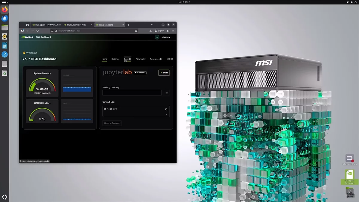Устройство работает под управлением специализированной ОС DGXOS, созданной на базе Ubuntu. Система уже включает в себя набор инструментов для быстрого старта разработки: от стандартных сред вроде Visual Studio Code до предустановленных руководств по настройке популярных фреймворков, таких как Comfy UI и Open Web UI. По словам тестеров, развёртывание рабочей среды для экспериментов с ИИ занимает буквально несколько минут.