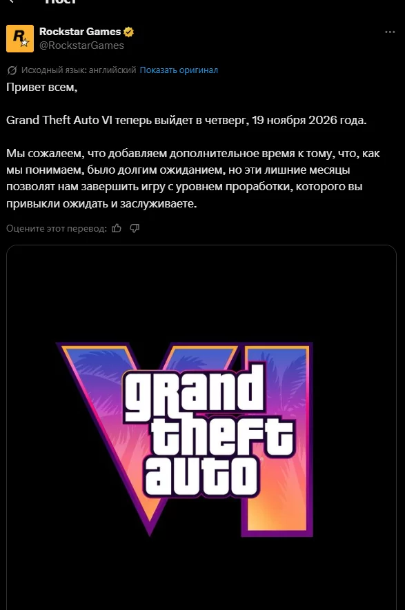 Официально: GTA 6 снова перенесли — теперь на 19 ноября 2026