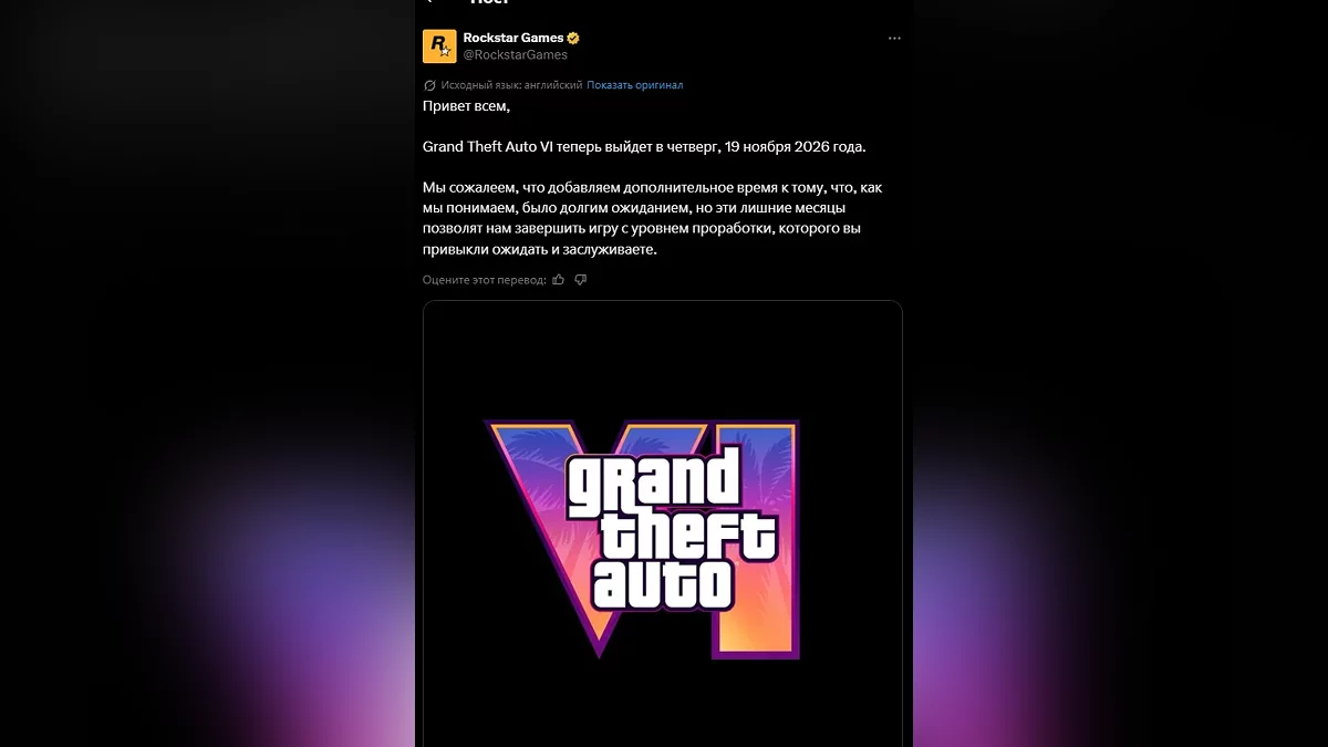 В заявлении говорится, что команде нужно «дополнительное время, чтобы завершить игру с тем уровнем полировки, которого игроки ожидают и которого заслуживают». Take-Two добавила, что полностью поддерживает Rockstar и уверена в «создании непревзойдённого развлекательного блокбастера».