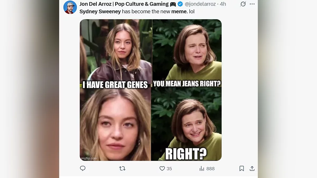 Сидни Суини ответила на критику за рекламу джинсов — и случайно породила волну мемов