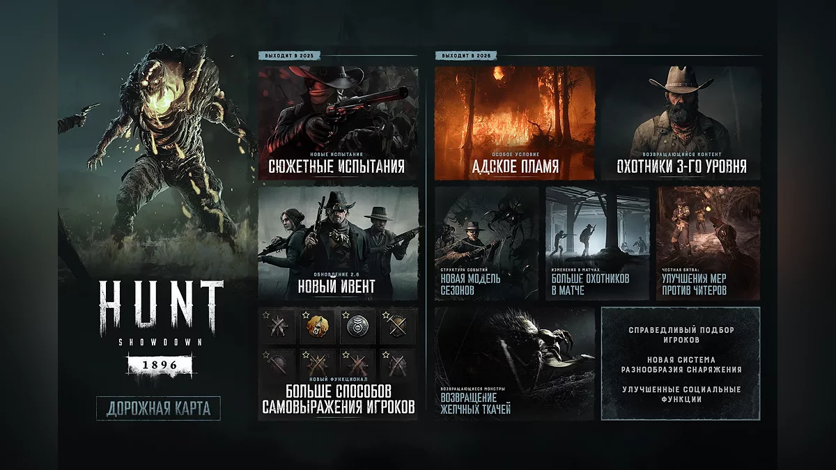 Наше видение на 2026-й построено на одном крепком обещании игрокам: дать вам больше способов жить, сражаться и выражать себя на болотах и в Распадке. Это значит углубление стратегической и тактической песочницы, при этом гарантируя честную борьбу для всех, а также расширение мира Hunt с глубокой осознанностью.