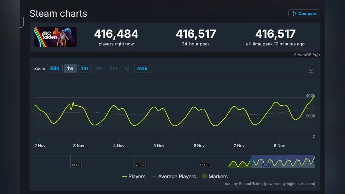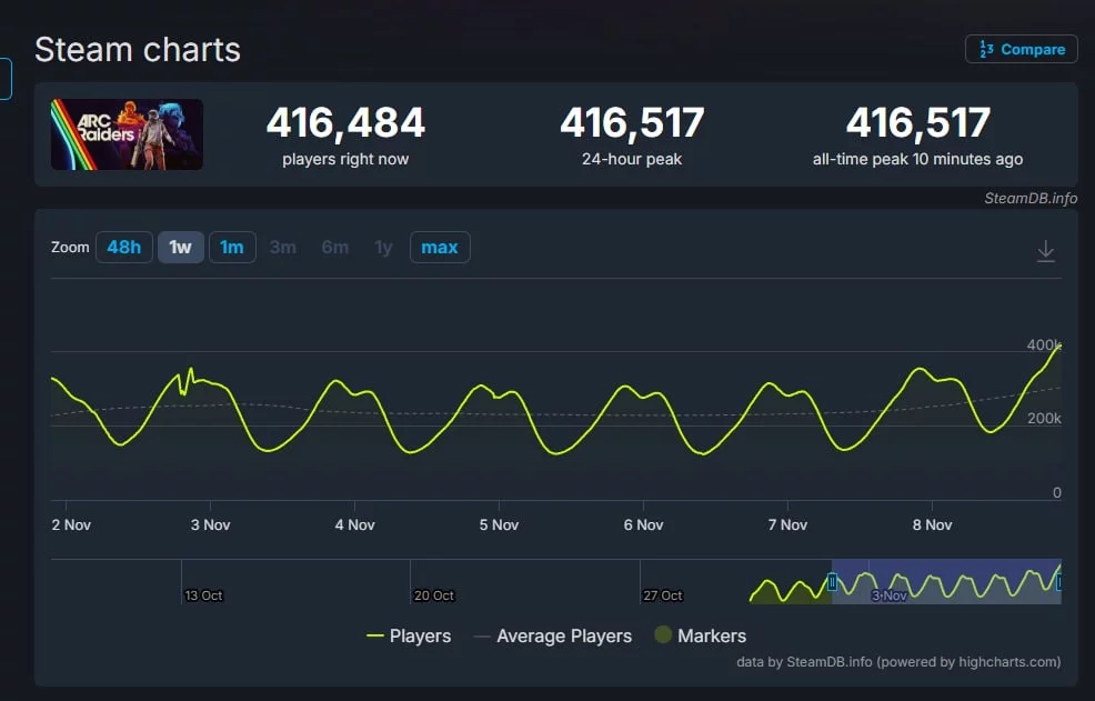 Всего за неделю после релиза ARC Raiders студия Embark отчиталась о впечатляющем достижении — пиковый онлайн шутера превысил 700 тысяч игроков на всех платформах.