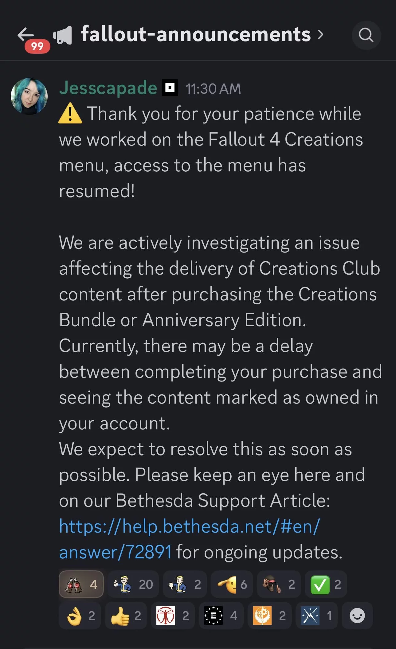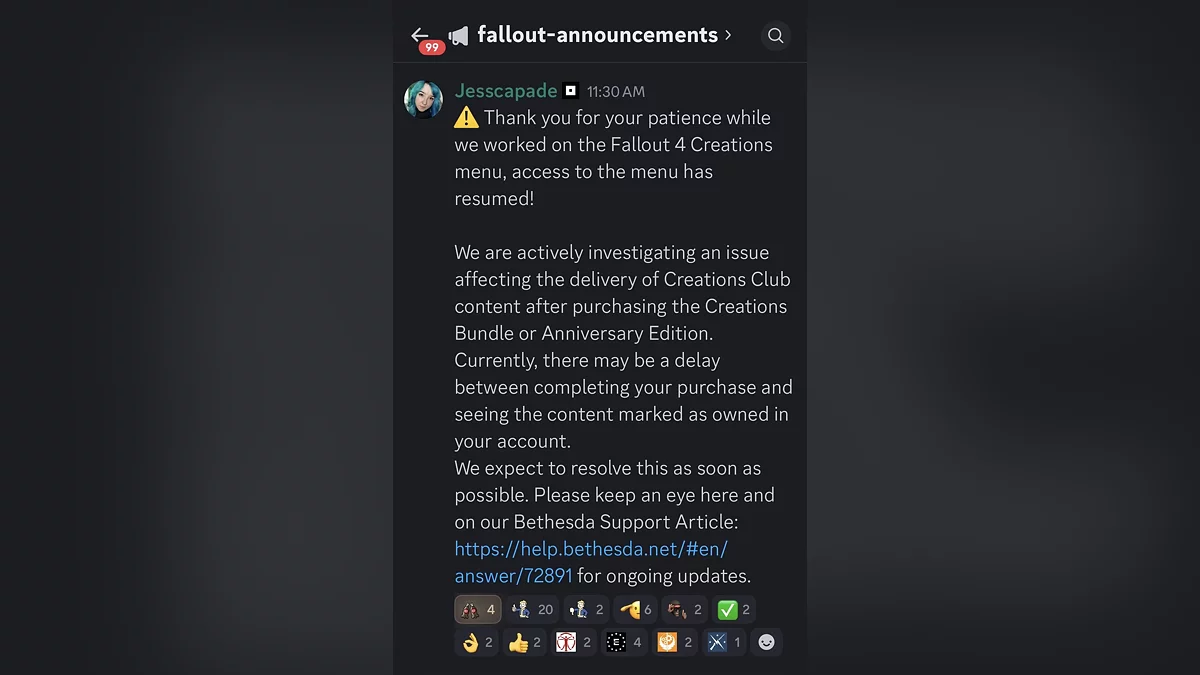 Компания уже выпустила заявление, подтвердив, что изучает проблемы с подключением контента из Creation Club после покупки юбилейного издания или набора Creations Bundle. Разработчики предупреждают, что может наблюдаться задержка между оплатой и появлением купленного контента в библиотеке, но обещают оперативное исправление.
