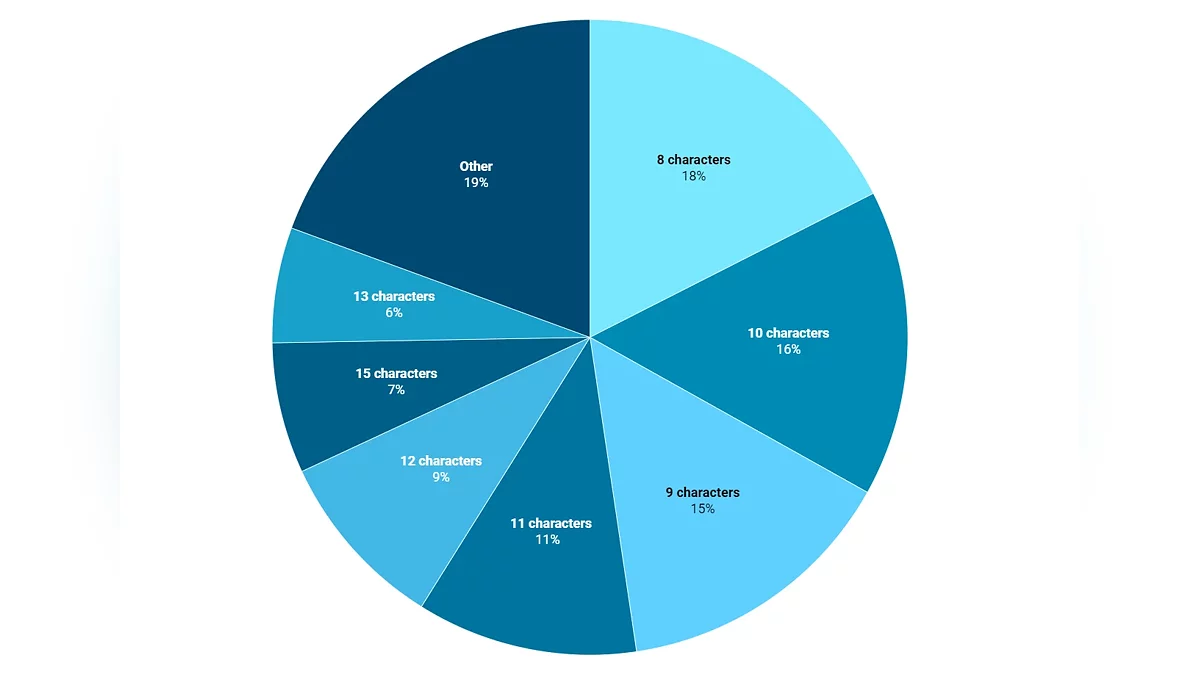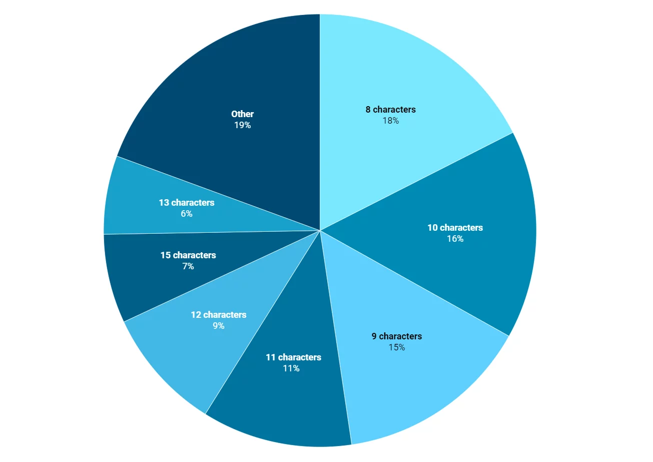 При этом исследование выявило несколько любопытных закономерностей, как оказалось, каждый четвертый популярный пароль состоит только из цифр, а комбинация «123» встречается почти в 40% случаев. Многие пользователи, судя по всему, предпочитают не заморачиваться, используя и вовсе один символ — «111111». Около 66% проанализированных комбинаций короче 12 символов, что значительно упрощает их взлом, при этом лишь 3% пользователей используют по-настоящему длинные пароли от 16 знаков.