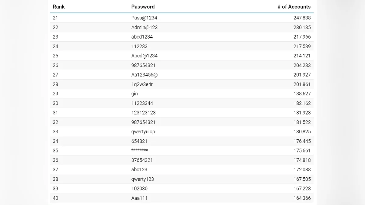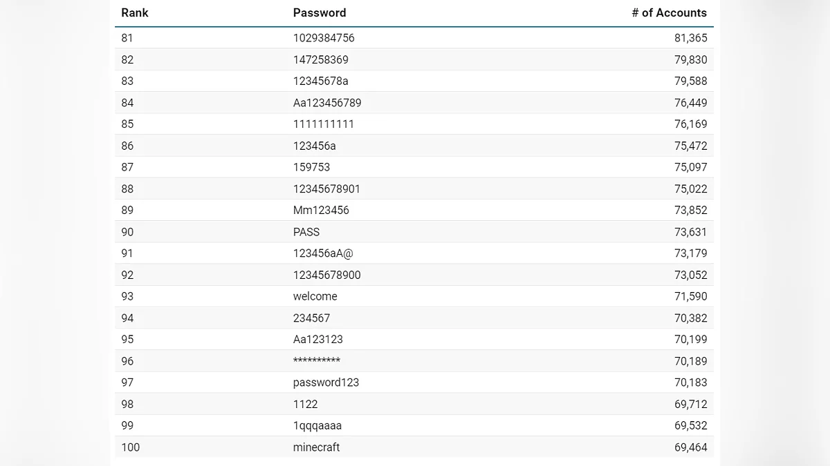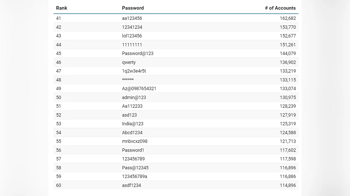 Люди часто выбирают то, что легко запомнить, не задумываясь о том, насколько это же просто подобрать, яркий пример — комбинация «Aa123456», которая пытается создать видимость сложности, но давно известна злоумышленникам. Среди тысяч вариантов мелькают и более специфичные слова. Так, «minecraft» оказалась на 100-й позиции, а «India@123» выделилась как регионально окрашенный, но столь же предсказуемый вариант.