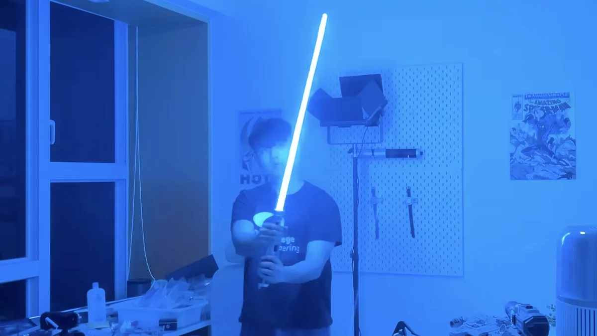 Мечта миллионов фанатов «Звездных войн» наконец обрела форму. Инженер-энтузиаст с YouTube-канала HeroTech, представил публике то, что еще недавно считалось невозможным — полностью функциональный световой меч с мгновенно выдвигающимся и втягивающимся клинком, но без «боевых» функций.