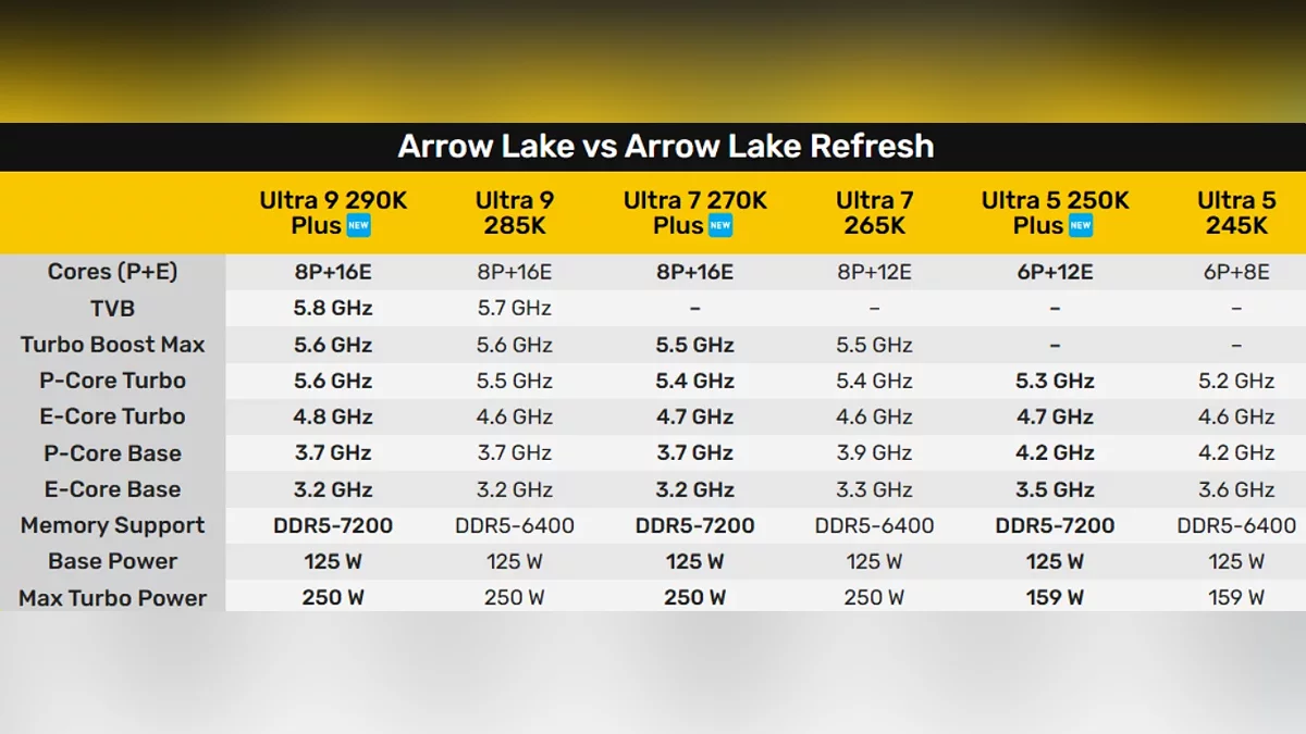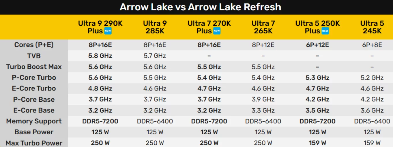 Еще одно ключевое улучшение — официальная поддержка более быстрой оперативной памяти DDR5-7200, ведь для текущих процессоров Arrow Lake стандартом является DDR5-6400. Это изменение позволит новым чипам сразу, без разгона, работать с более производительными комплектами ОЗУ. Теплопакет (TDP) у обновленных моделей останется на прежнем уровне, что говорит об оптимизации энергоэффективности.