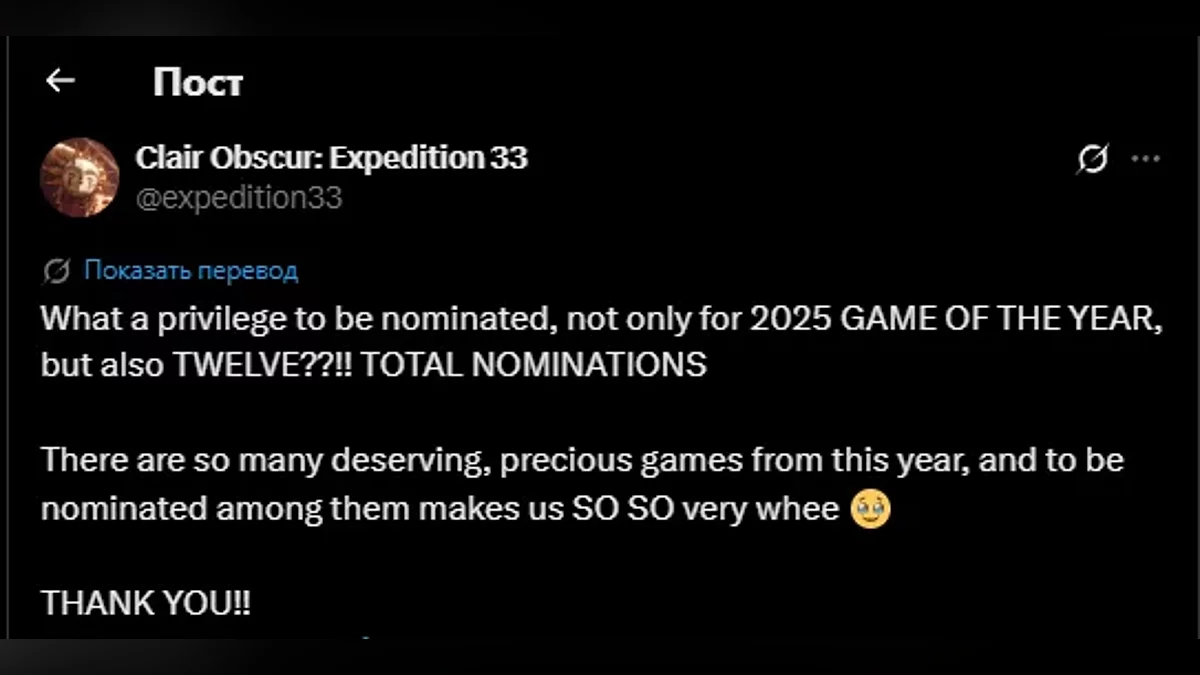 Французская студия Sandfall Interactive призналась, что сама не ожидала такого триумфа: её дебютная JRPG Clair Obscur: Expedition 33 получила 12 номинаций на The Game Awards 2025, став самым отмеченным проектом в истории церемонии.