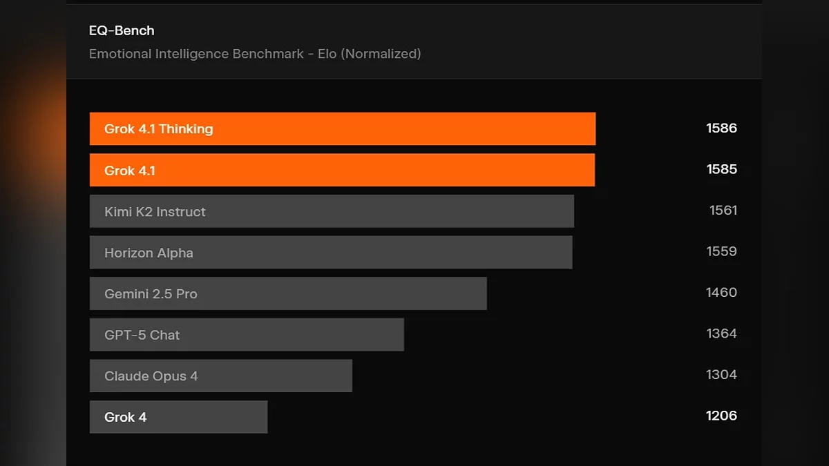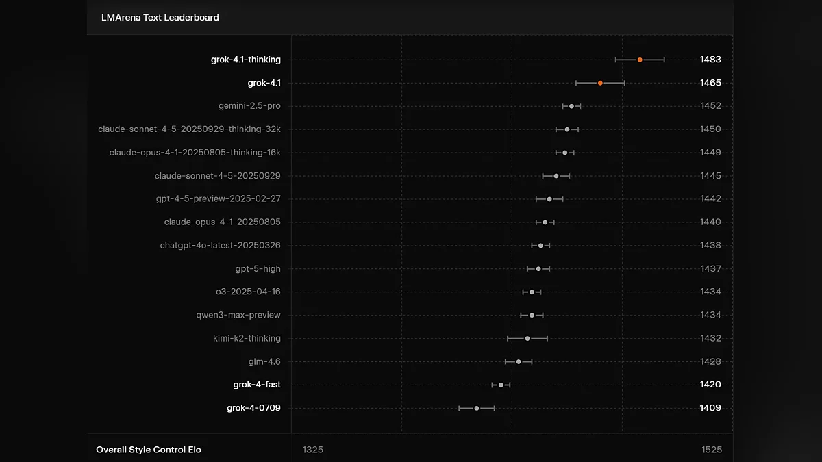Одним из ключевых улучшений стала работа над ошибками, так в xAI сообщают, что в «быстром» режиме, который использует поиск в интернете, количество фактических неточностей удалось сократить более чем в два раза. В тесте LMArena Text, который оценивает общие способности моделей, Grok 4.1 занял первую строчку опередив Gemini, Claude и ChatGPT. Отдельно отмечаются высокие баллы в специализированных проверках на креативность и эмоциональный интеллект.