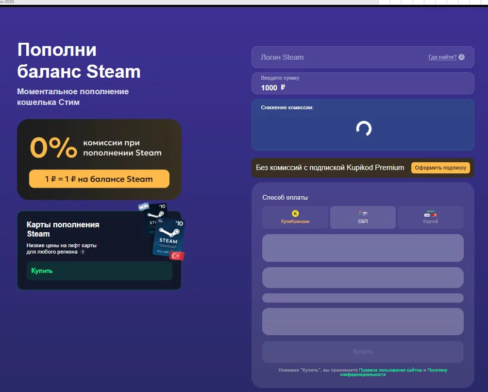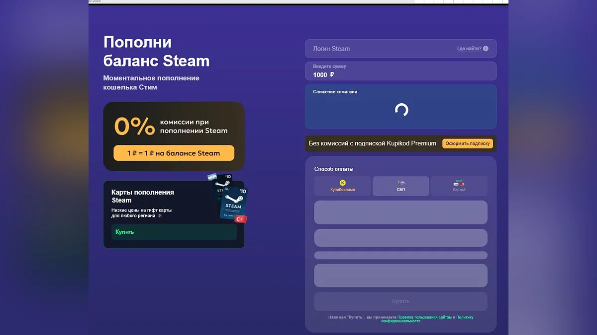 История началась с акции, в рамках которой Kupikod предлагал пользователям пополнить баланс Steam без комиссии. Однако при пополнении автоматически подключалась подписка (без отдельного уведомления), которая списывала 299 рублей. О ней было указано только в публичной оферте, ссылка на которую появилась не сразу (судя по скриншоту от 12 сентября). Отменить подписку на сайте сервиса было невозможно из-за отсутствия соответствующей кнопки — пользователям приходилось обращаться в техподдержку своего банка. В итоге инцидент с подпиской перерос в громкий скандал.