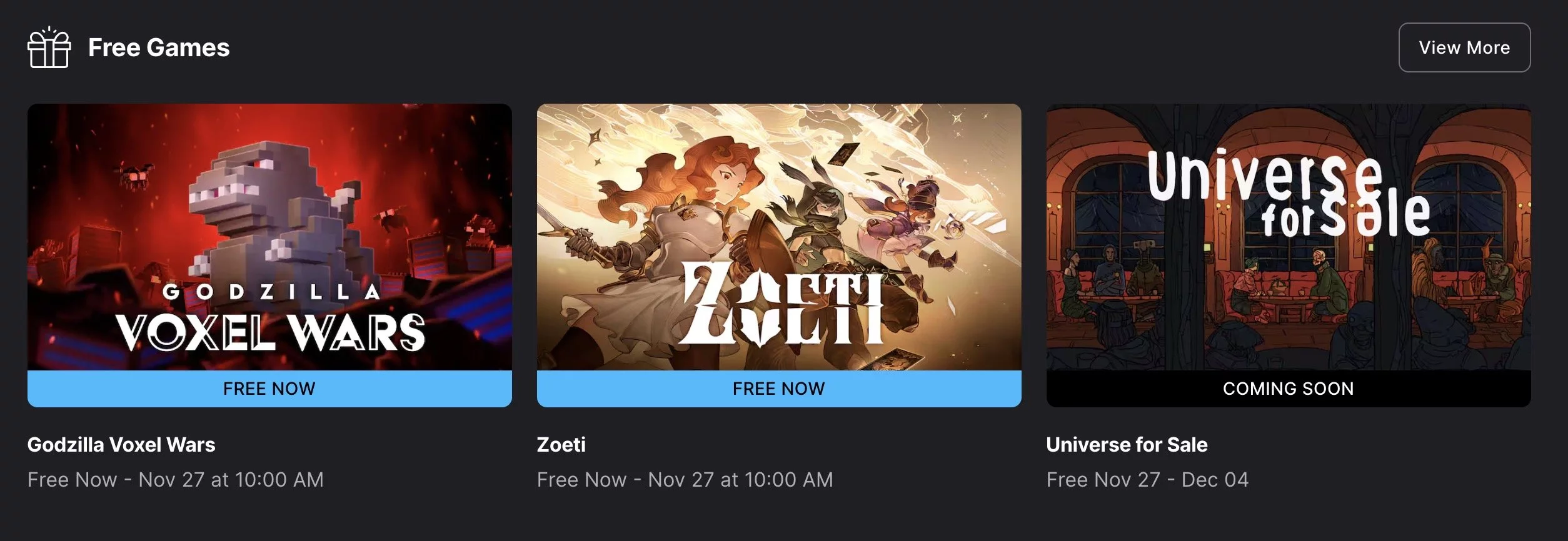 В Epic Games Store запустили новую бесплатную раздачу. До 27 ноября 19:00 (МСК) пользователи сервиса могут бесплатно забрать в библиотеку две игры — Godzilla Voxel Wars и Zoeti.
