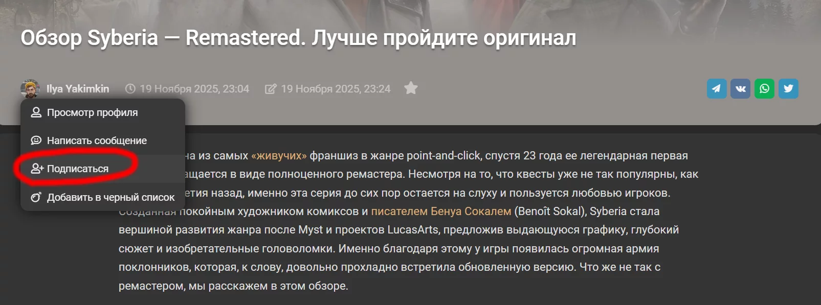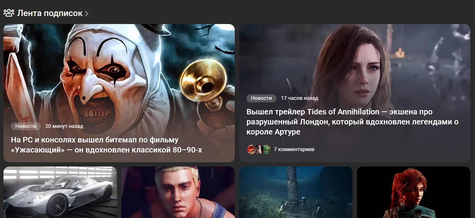 На VGTimes появилась «Лента подписок», которая позволяет пользователям подписаться на любимых авторов, чтобы не пропускать публикации их статей, новостей и других материалов.
