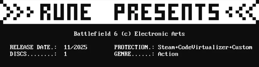 Группа хакеров RUNE сообщила о взломе Steam-версии шутера Battlefield 6 (сюжетного режима). В игре не было Denuvo — вместо неё Electronic Arts использовала кастомную защиту и CodeVirtualizer.