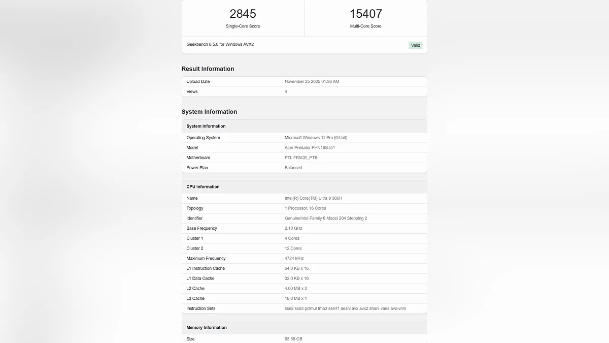 В интернете появились первые тесты еще не анонсированного мобильного процессора Intel Core Ultra 9 386H. Данные, полученные из базы Geekbench, демонстрируют, что чип из будущего поколения Panther Lake может стать новым лидером производительности для игровых ноутбуков и рабочих станций.