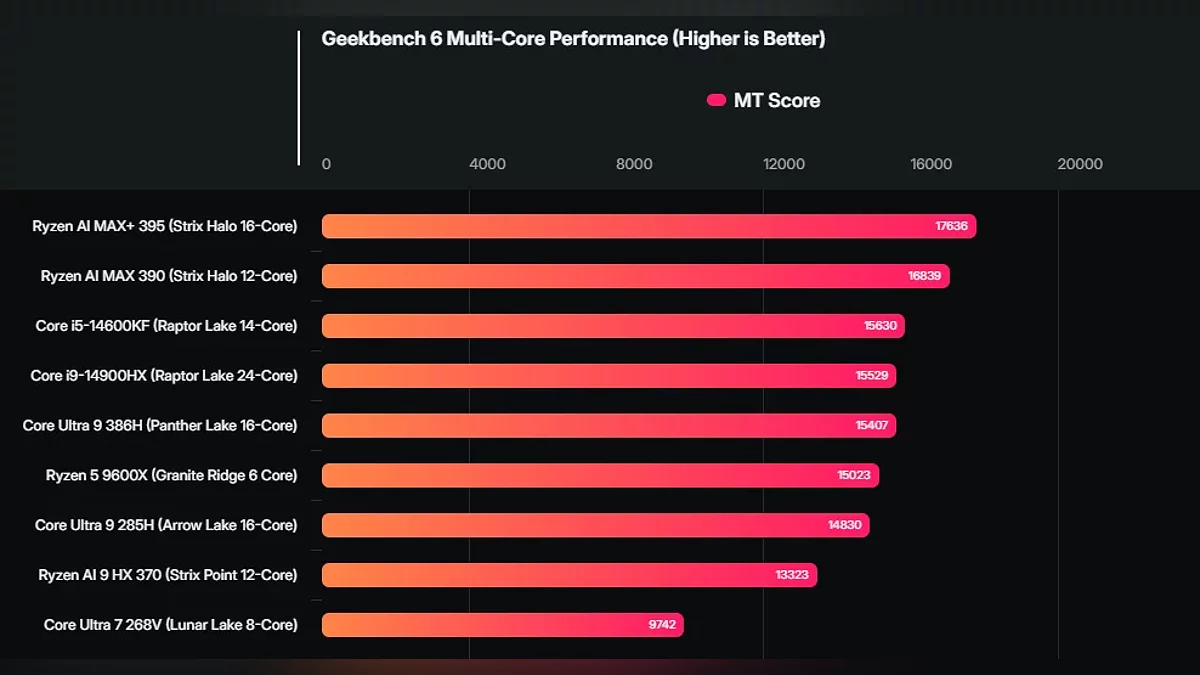 В сравнении с предыдущими поколениями Intel новинка более чем в полтора раза быстрее восьмиядерных процессоров Lunar Lake, которые сегодня считаются одними из самых эффективных, при этом она демонстрирует результат, близкий к 24-ядерному Core i9-14900HX, несмотря на менее высокие тактовые частоты. Скачок производительности связывают с новой гибридной архитектурой Panther Lake, где имеется три типа ядер: мощные, энергоэффективные и сверхэкономные, что позволяет гибко распределять нагрузку.