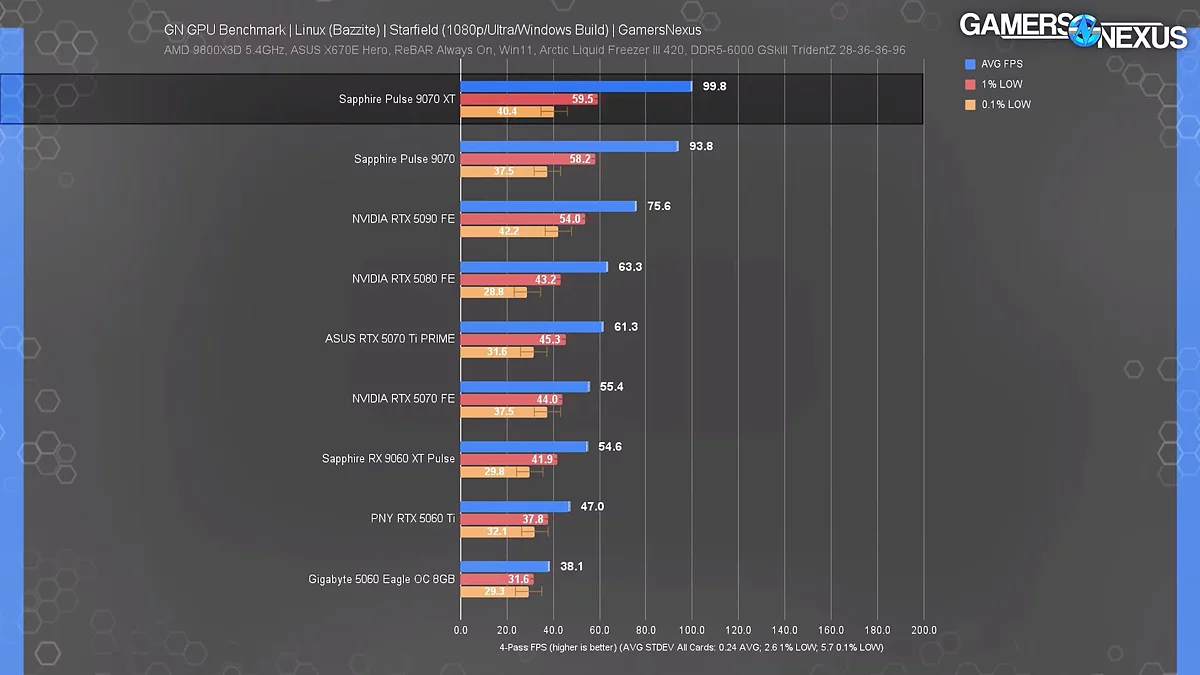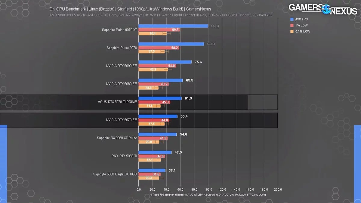 В Starfield все протестированные карты NVIDIA, независимо от ценового сегмента, показывали почти идентичную производительность. Более того, RTX 5090 незначительно отставала от гораздо более дешевой Radeon RX 9070 XT. Похожая картина наблюдалась и в нативной Linux-сборке Baldur's Gate 3, где флагман не смог обойти не только конкурента от AMD, но и младшую модель в своей линейке — RTX 5070. Проблему удалось решить только запуском Windows-версии игры через эмулятор Proton.