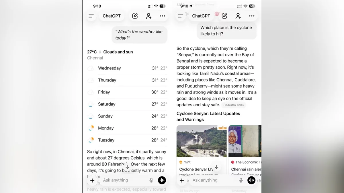 Теперь голосовой режим встроен непосредственно в окно текстового чата, так что пользователи могут говорить с искусственным интеллектом и одновременно видеть, как ответы появляются в виде текста. Такой подход позволяет следить за историей беседы, просматривать предыдущие сообщения и, что важно, видеть визуальные материалы — например, карты или изображения, которые может показывать бот в ответ на голосовой запрос. Ранее для использования голоса приходилось переключаться в специальный интерфейс, где был виден только анимированный кружок, а текст ответов не отображался.