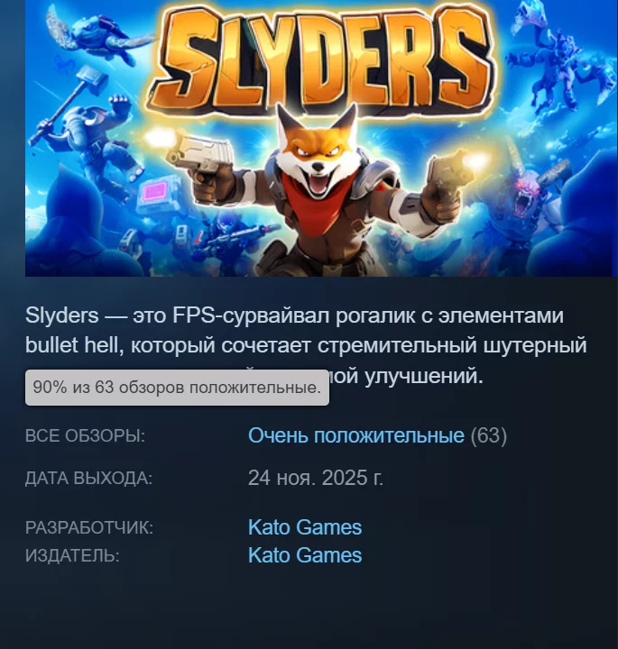 90% рейтинга: в Steam вышел шутер Slyders, похожий на смесь Vampire Survivors и Serious Sam