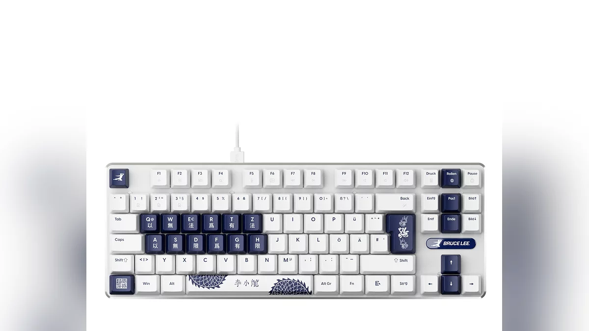Основу набора составляет клавиатура PCMK 3 HE Bruce Lee 85th Edition. Устройство формата TKL (без цифрового блока) выполнено в бело-синей гамме с элементами желтого. Часть клавиш, часто используемых в файтингах, отмечена иероглифами, а на нижней панели нанесено имя Брюса Ли. Модель использует магнитные переключатели Gateron x Pulsar с усилием срабатывания 30 грамм, поддерживает технологию Rapid Trigger и аналоговый ввод, а частота опроса достигает 8 000 Гц.