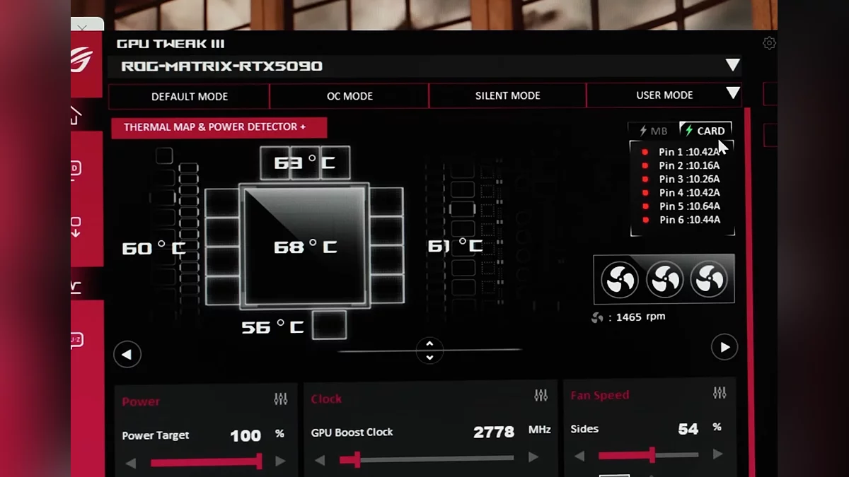 ASUS ROG Matrix RTX 5090 изначально спроектирована для работы в двух конфигурациях питания и для активации высокопроизводительного BIOS на 800 Вт требуется одновременное подключение как стандартного кабеля питания, так и специального BTF-разъёма на материнской плате, а если используется только кабель, мощность ограничивается 600 Вт.