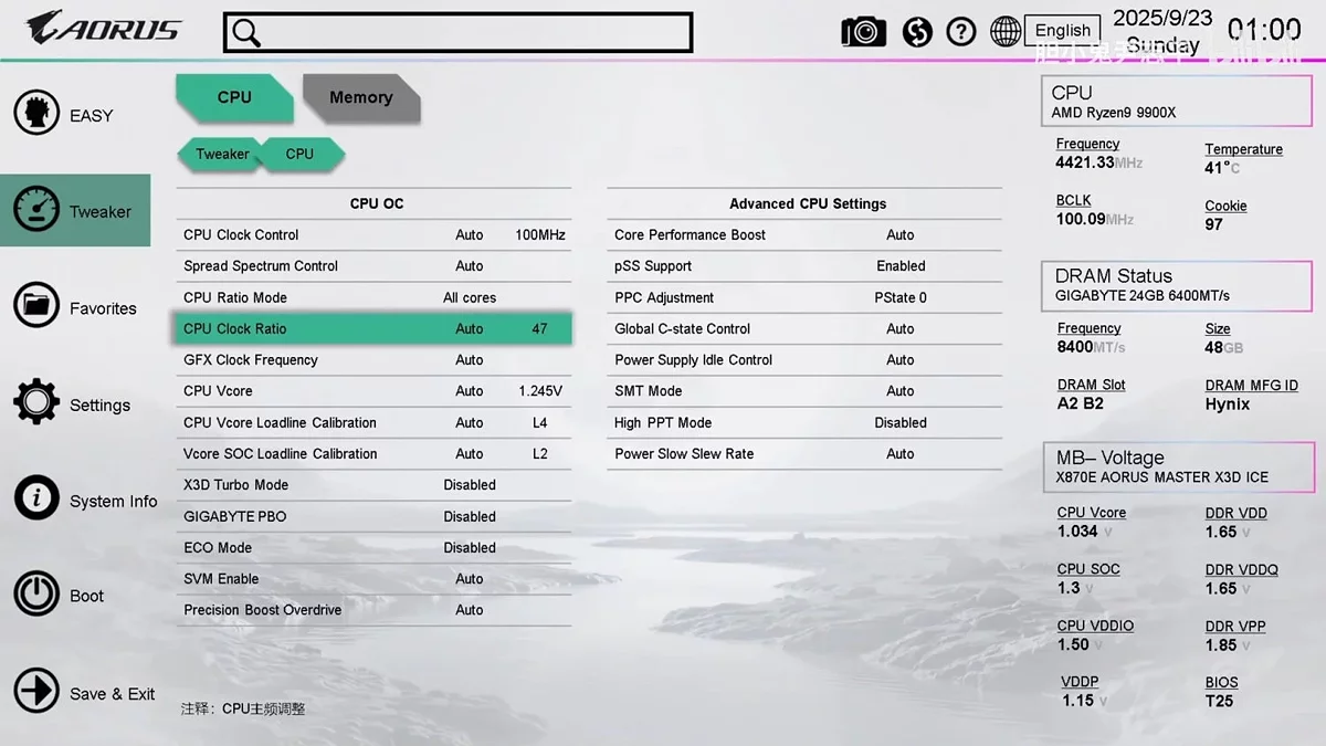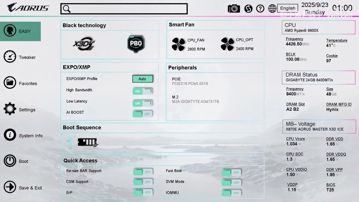 Особое внимание в прошивке уделили мониторингу, так правая информационная панель теперь показывает детальную вольтметрию: напряжения процессорного комплекса (SOC, VDDIO) и оперативной памяти (VDD, VDDQ). Настройки также перегруппировали для удобства пользователей и теперь все ключевые параметры для оверклокинга ОЗУ, включая тайминги, собрали в одном разделе — DRAM OC. Функции для тонкой настройки процессора, такие как Precision Boost Overdrive (PBO) и специальный режим для чипов с 3D V-Cache, перенесли в отдельное меню с необычным названием Black Technology.