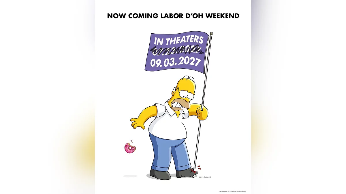 Кинокомпания 20th Century cообщила о переносе полнометражного мультфильма «Симпсоны в кино 2» (The Simpsons Movie 2) на 3 сентября 2027 года. Изначально его планировали выпустить 23 июля.